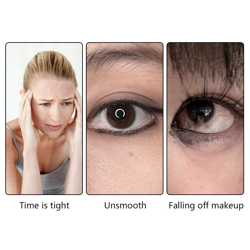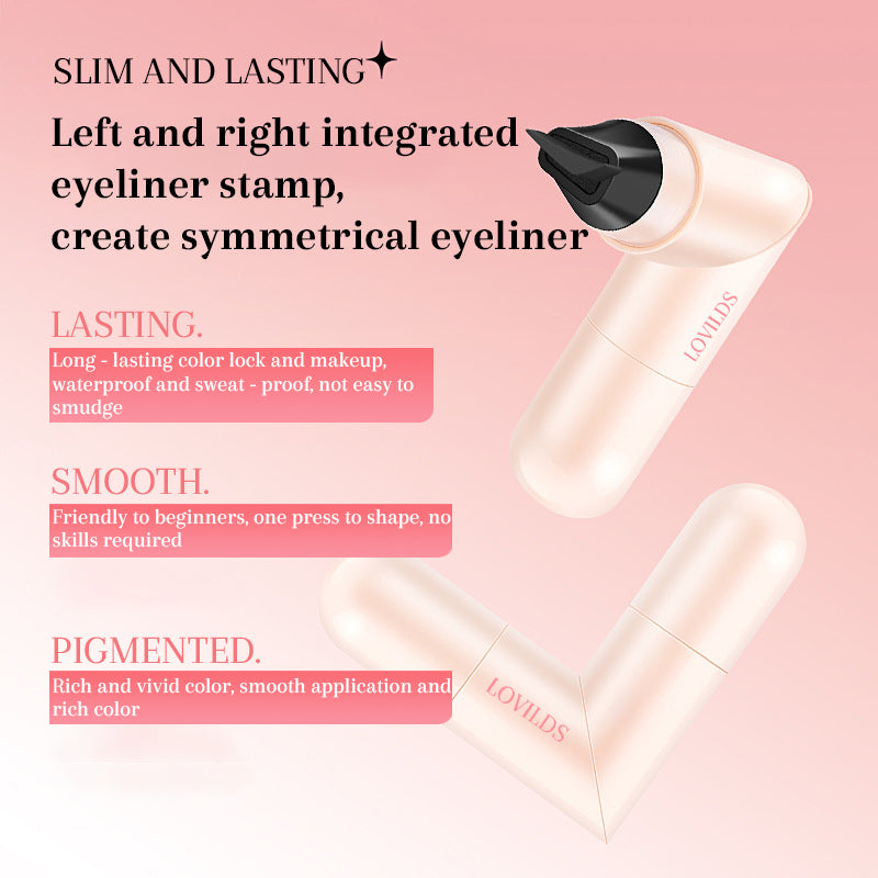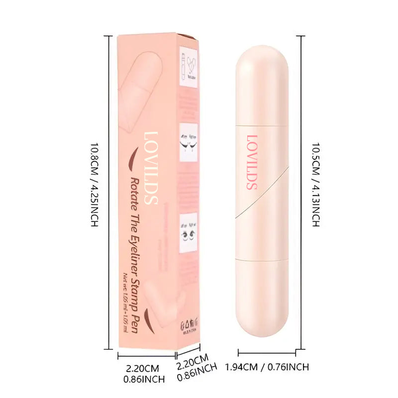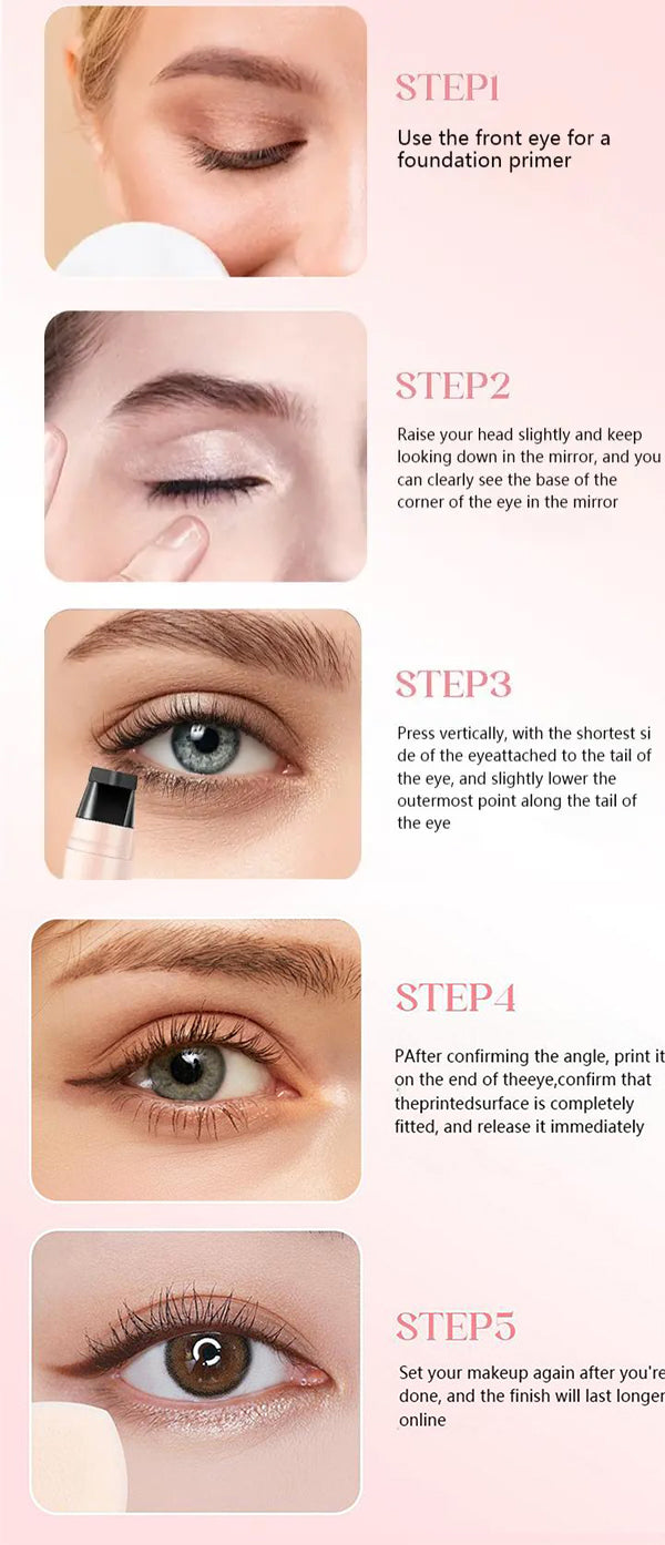 Then, gently press the stamp at the outer corner of your eye, aligning it with the end of your lower lash line for a natural angle. Hold for a second and lift straight up.